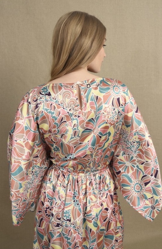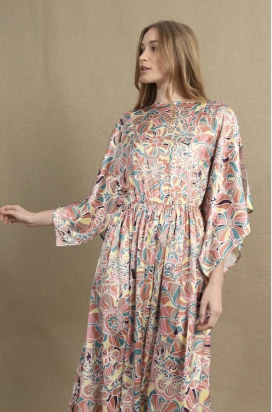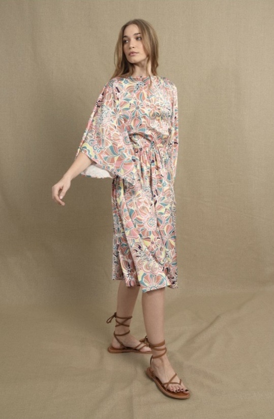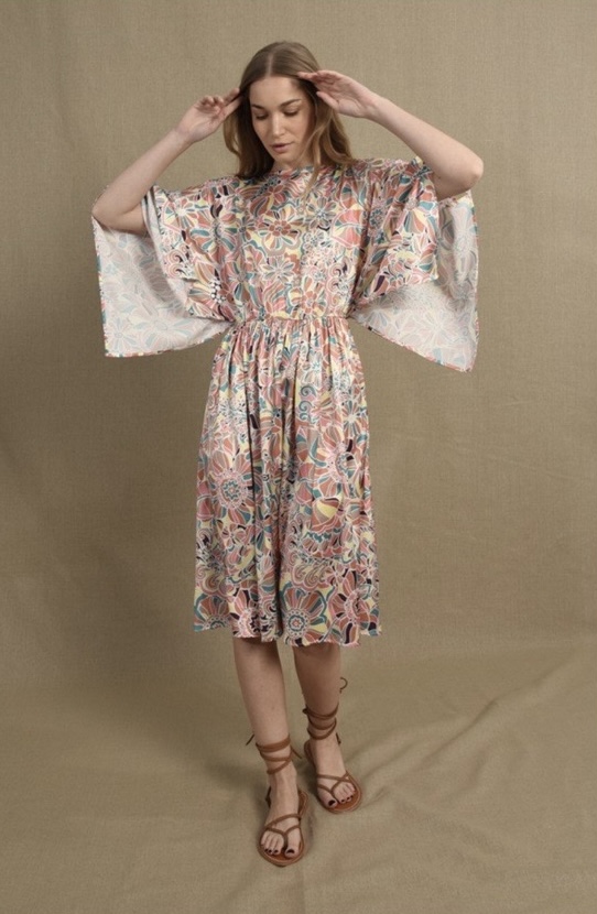 Midi φόρεμα με μανίκια κιμονό σε καλοκαιρινό pattern. Αέρινο ρούχο με κίνηση που μπορείς να φορέσεις στην βόλτα σου ή στο γραφείο!