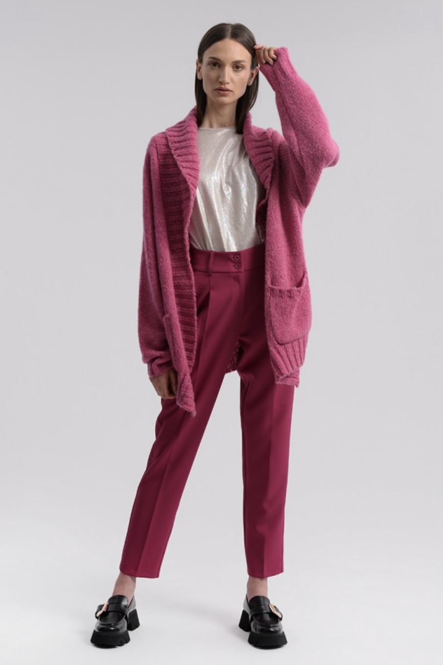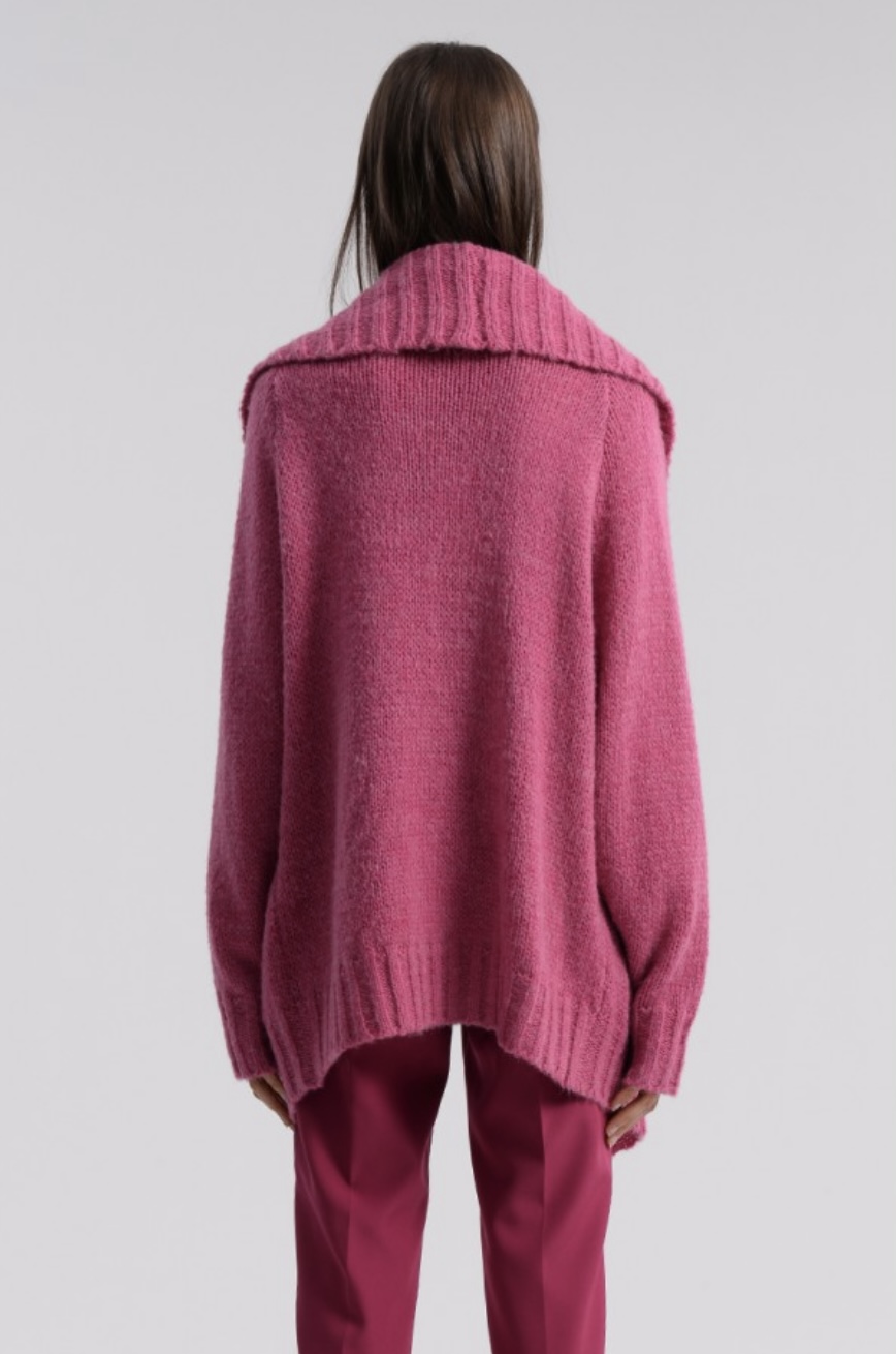Oversized πλεκτή ζακέτα με μεγάλο χαλαρό γιακά και μπροστινές τσέπες. Ιδανική επιλογή για layering!