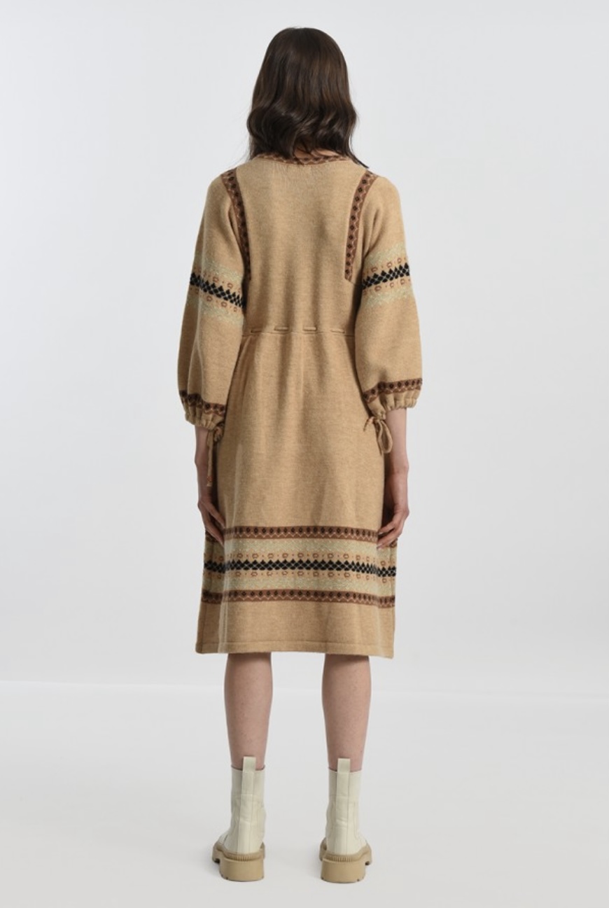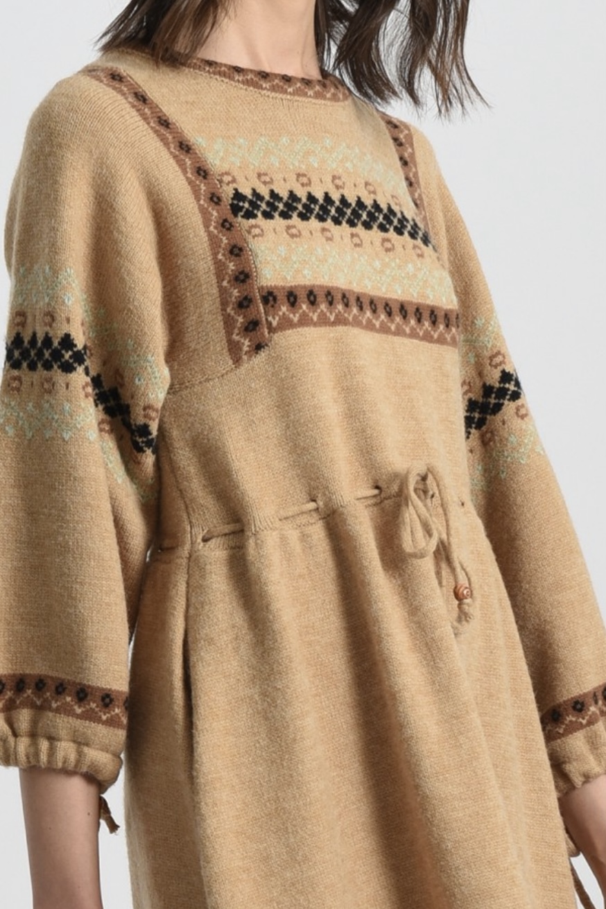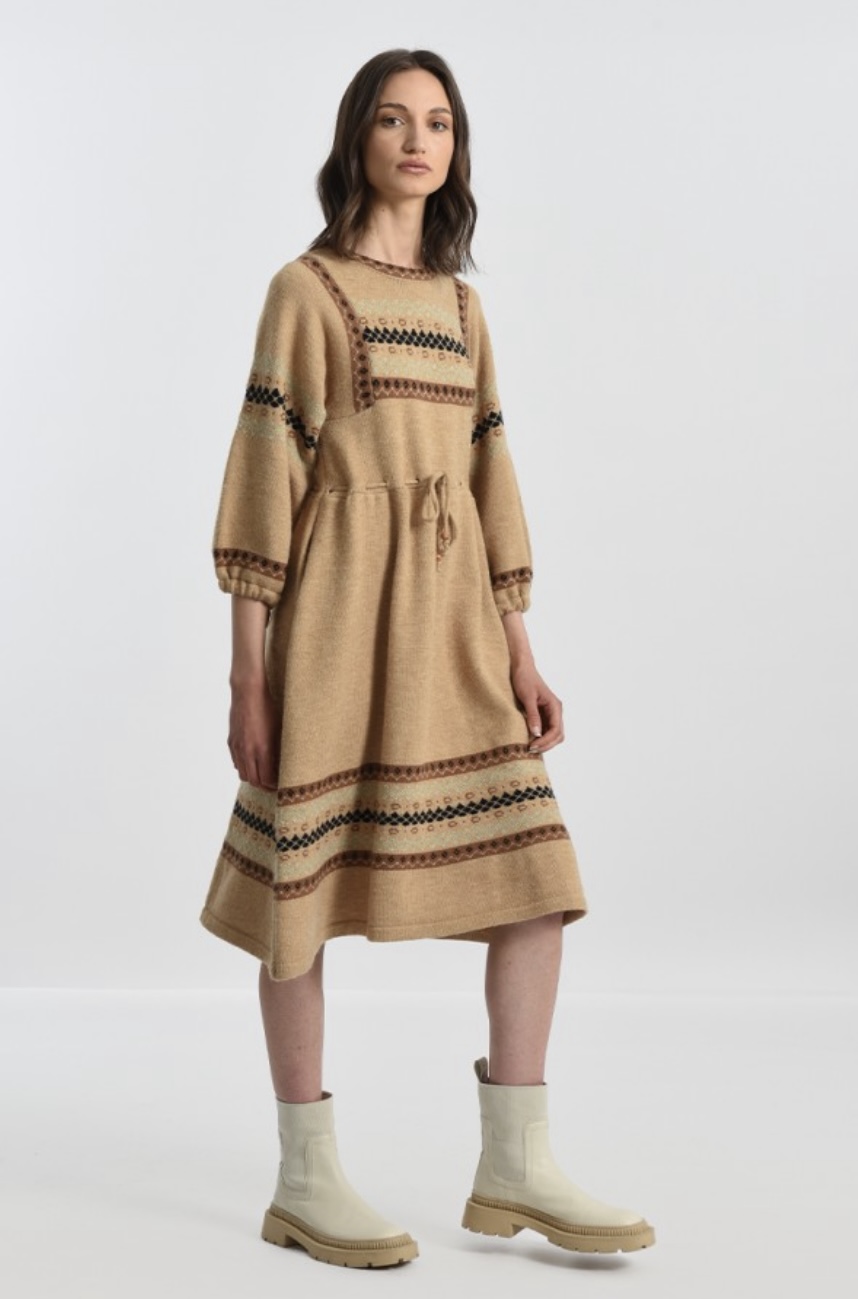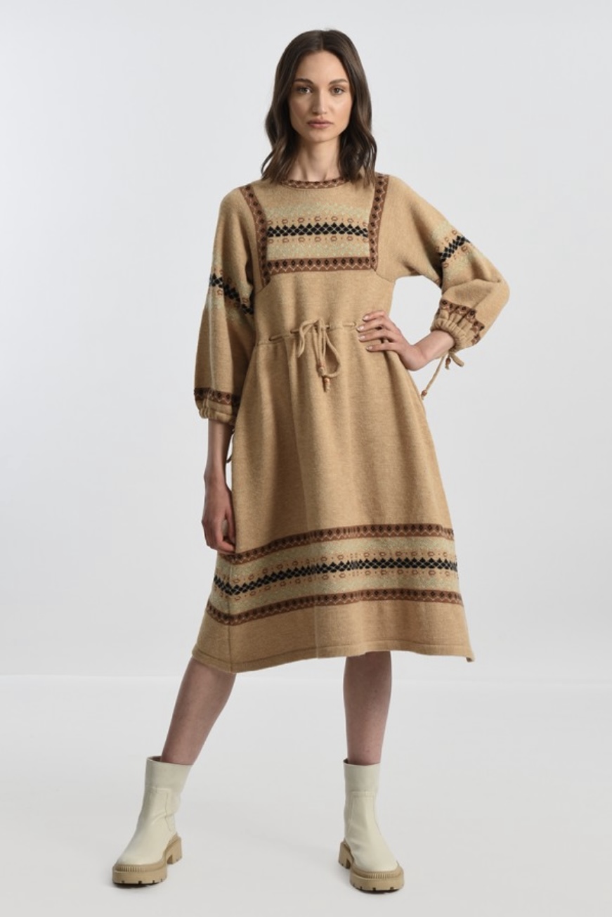 Midi πλεκτό φόρεμα σε Α γραμμή. Έχει χαλαρή γραμμή ,μανίκια 3/4 και ζώνη στην μέση. Πολύ ζεστό και άνετο!
