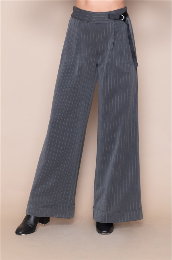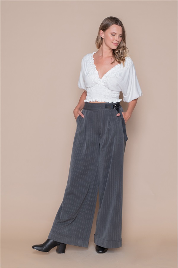 Ψηλόμεση παντελόνα ριγέ με ζώνη.